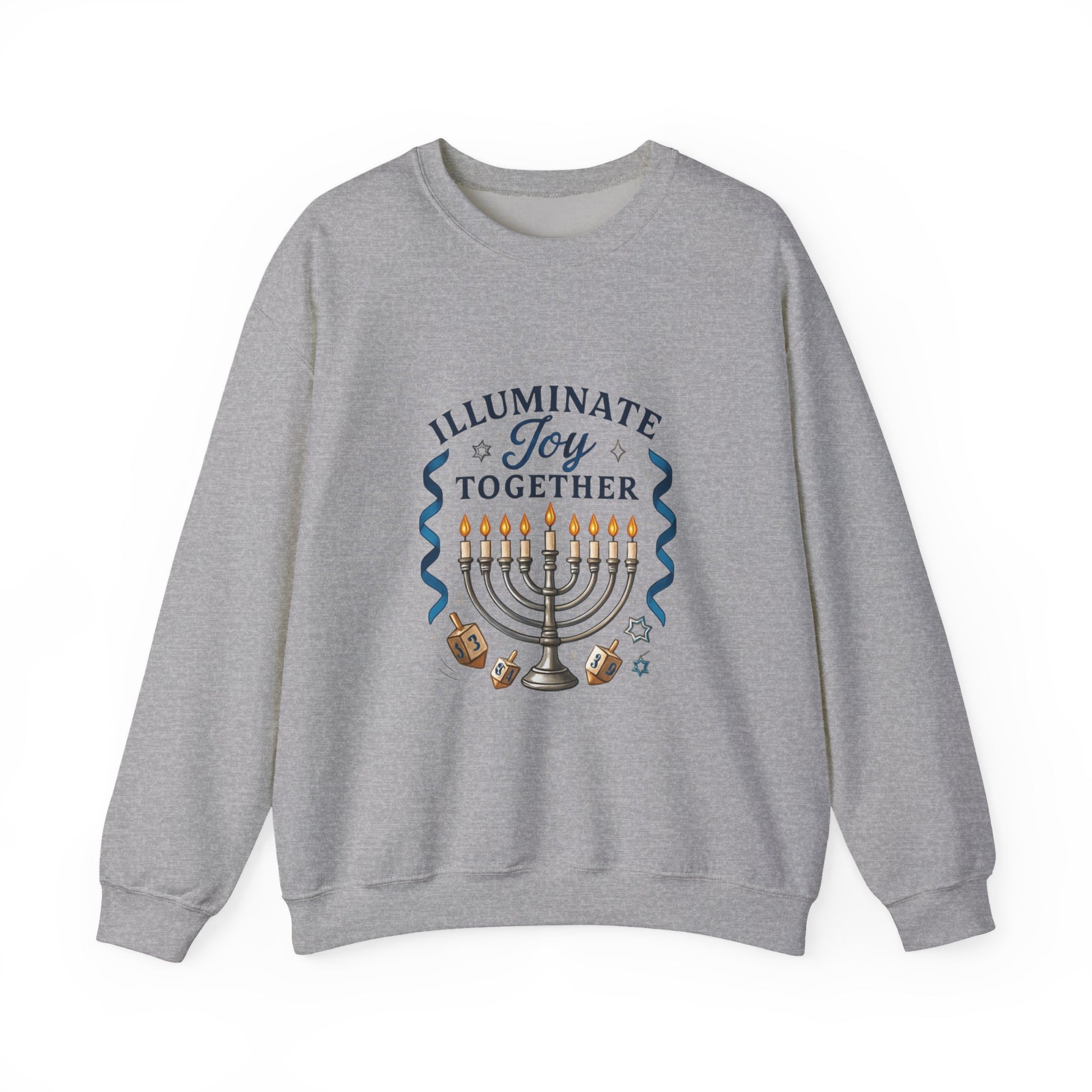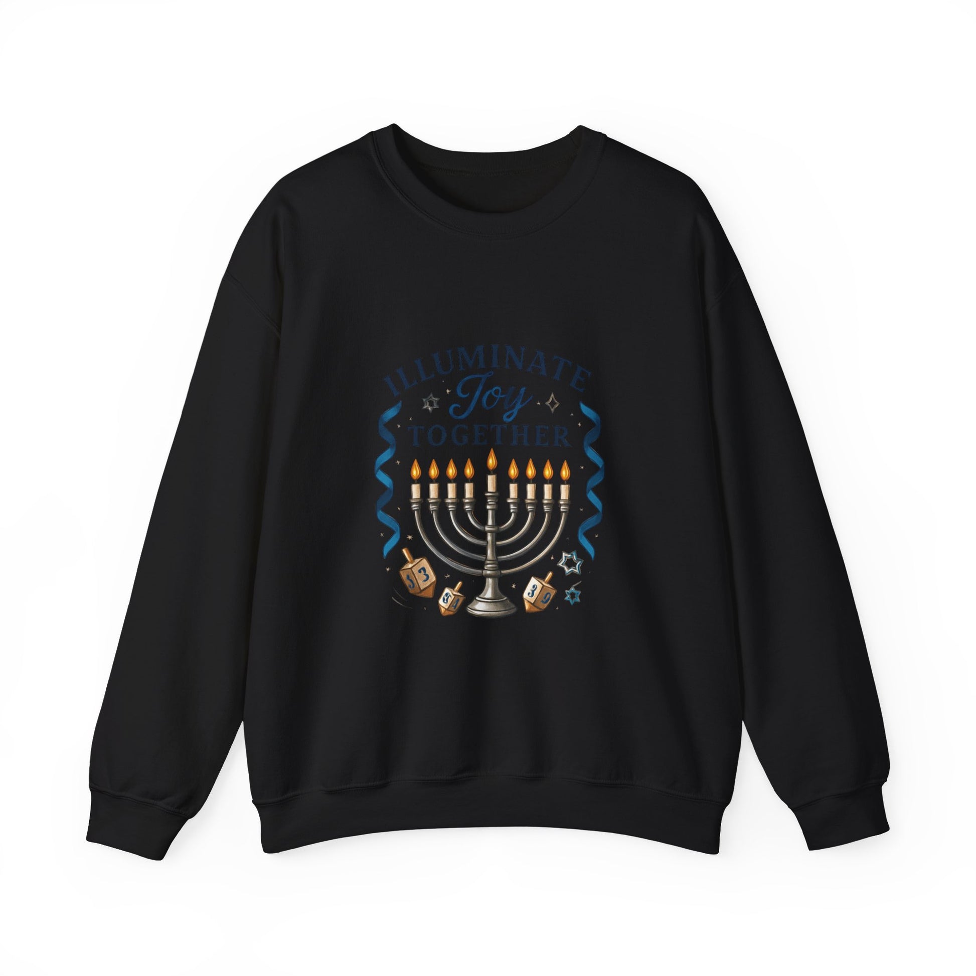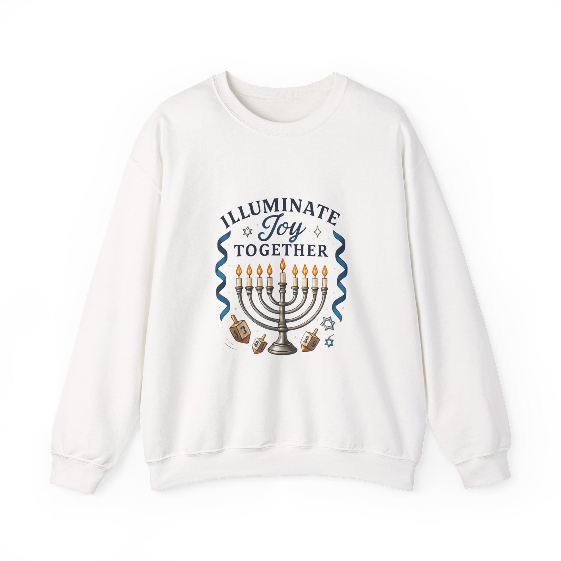 Hanukkah Sweatshirt - "Illuminate Joy Together" Menorah & Dreidel Holiday Crewneck